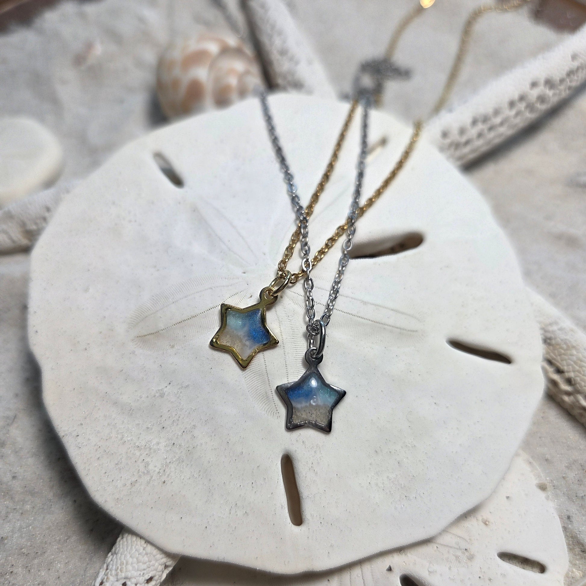 The pendant is suspended from a sleek and durable 316L stainless steel chain (pvd coat 18k gold) . The 18 inch chain includes a 2 inch extender, allowing for a comfortable and adjustable fit. It's a perfect keepsake for any ocean lover!