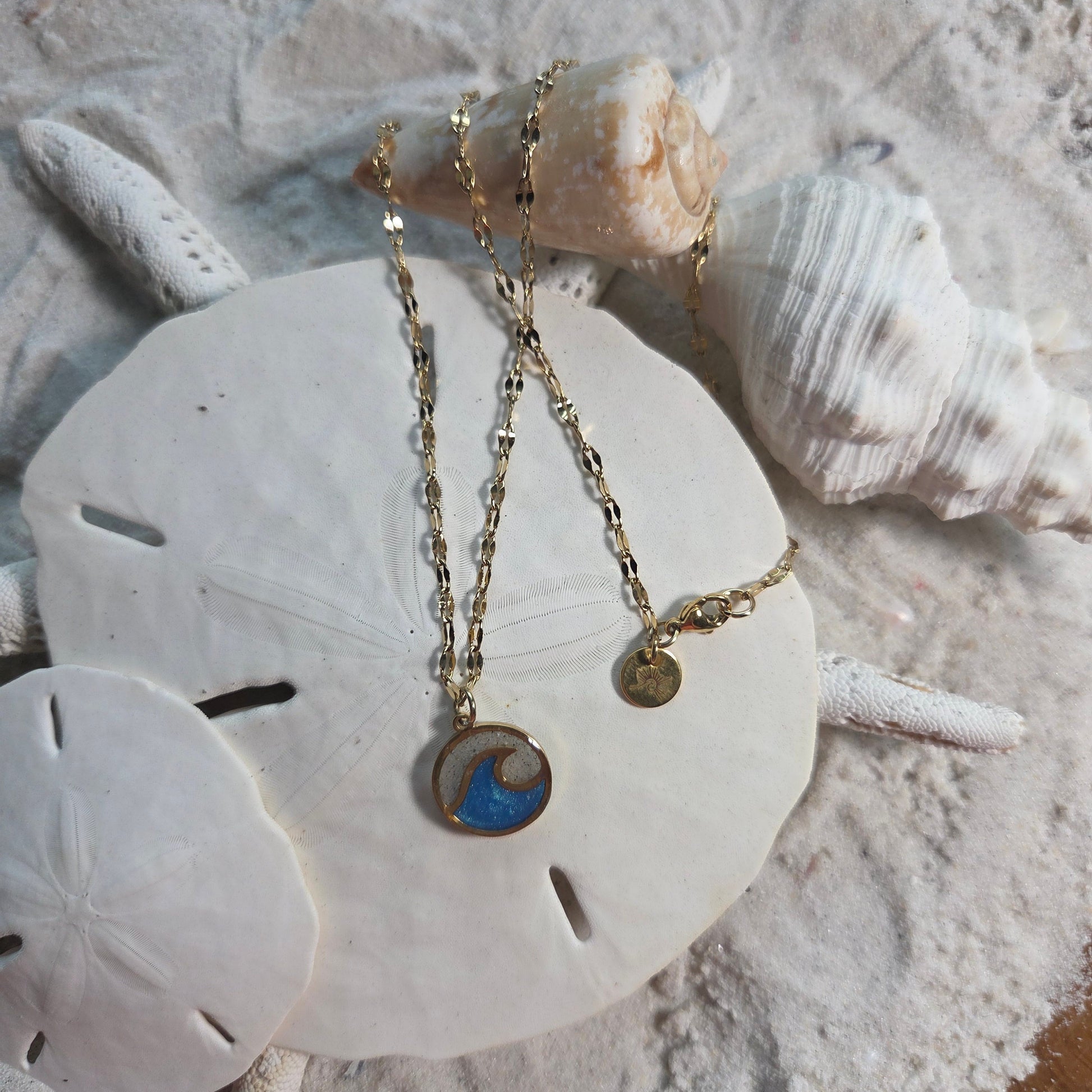 Carry the spirit of the seaside with you with this charming wave necklace. Each adorable turtle pendant is meticulously handcrafted using genuine Florida beach sand, making every piece a unique work of art. The natural, beach-inspired colors in the sand ensure that your necklace is truly one-of-a-kind.